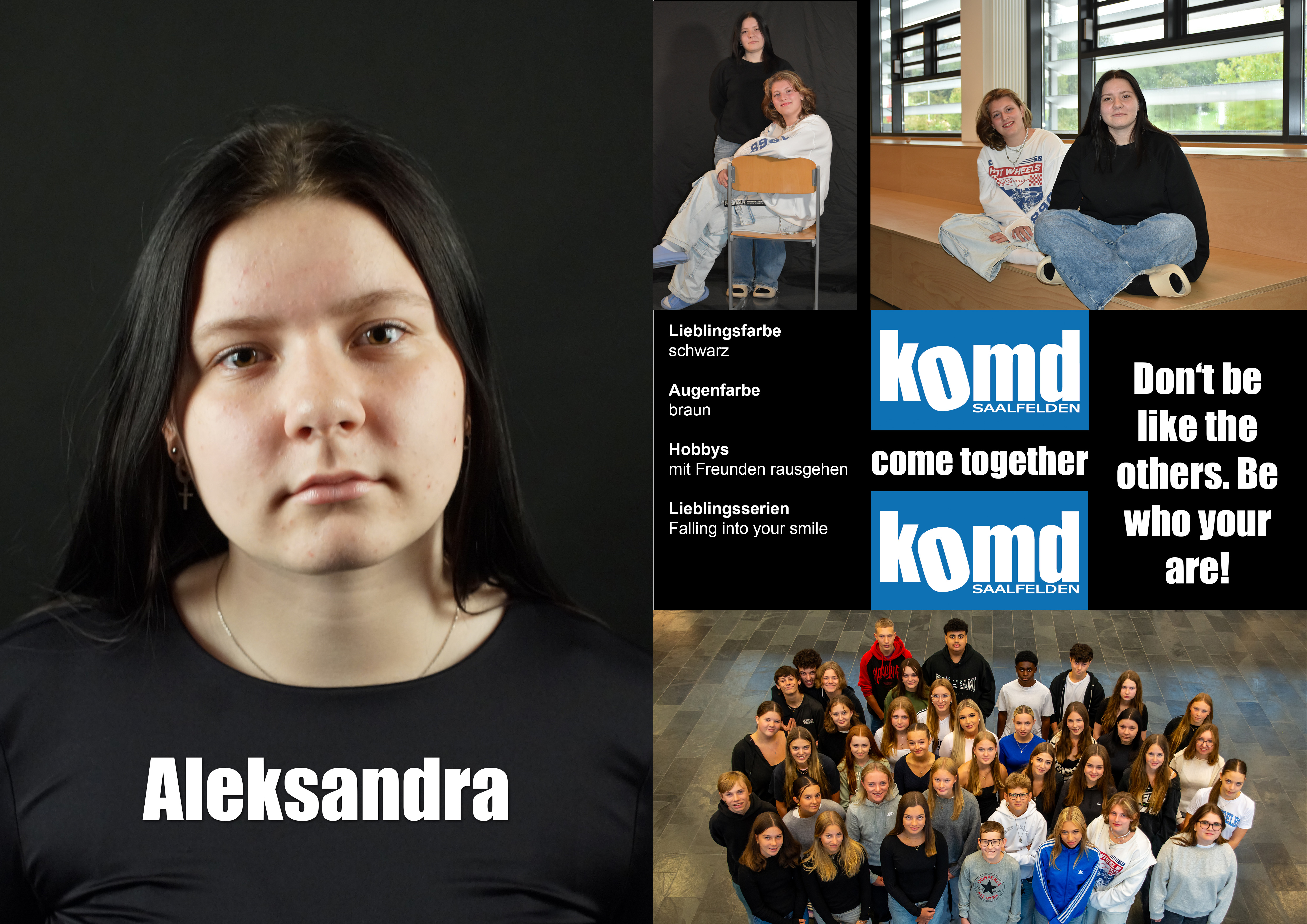 Hi my name is Aleksandra Fundorko and I live in Kitzbühel. I was born on 23rd February 2009 in Riga, Latvia, but moved here for better education. I went to an elementary school in Kitzbühel, then I was in secondary school also in Kitzbühel. I chose this school because my old teachers recommended it a lot and I thought why not, I should at least try. I really enjoy this school and this sector because we have really nice teachers and we can be creative all the time. I love listening to music a lot because it makes me very happy which is really important nowadays. One of my favourite hobbies is to create a random website with my dad. He teaches me how to do it the right way and it is a lot of fun. I will finish school because my parents want me to finish it and I also want to finish and have an education. But we will see how it works out in the end. In the future I probably will go to a university to get a degree like my big sister.