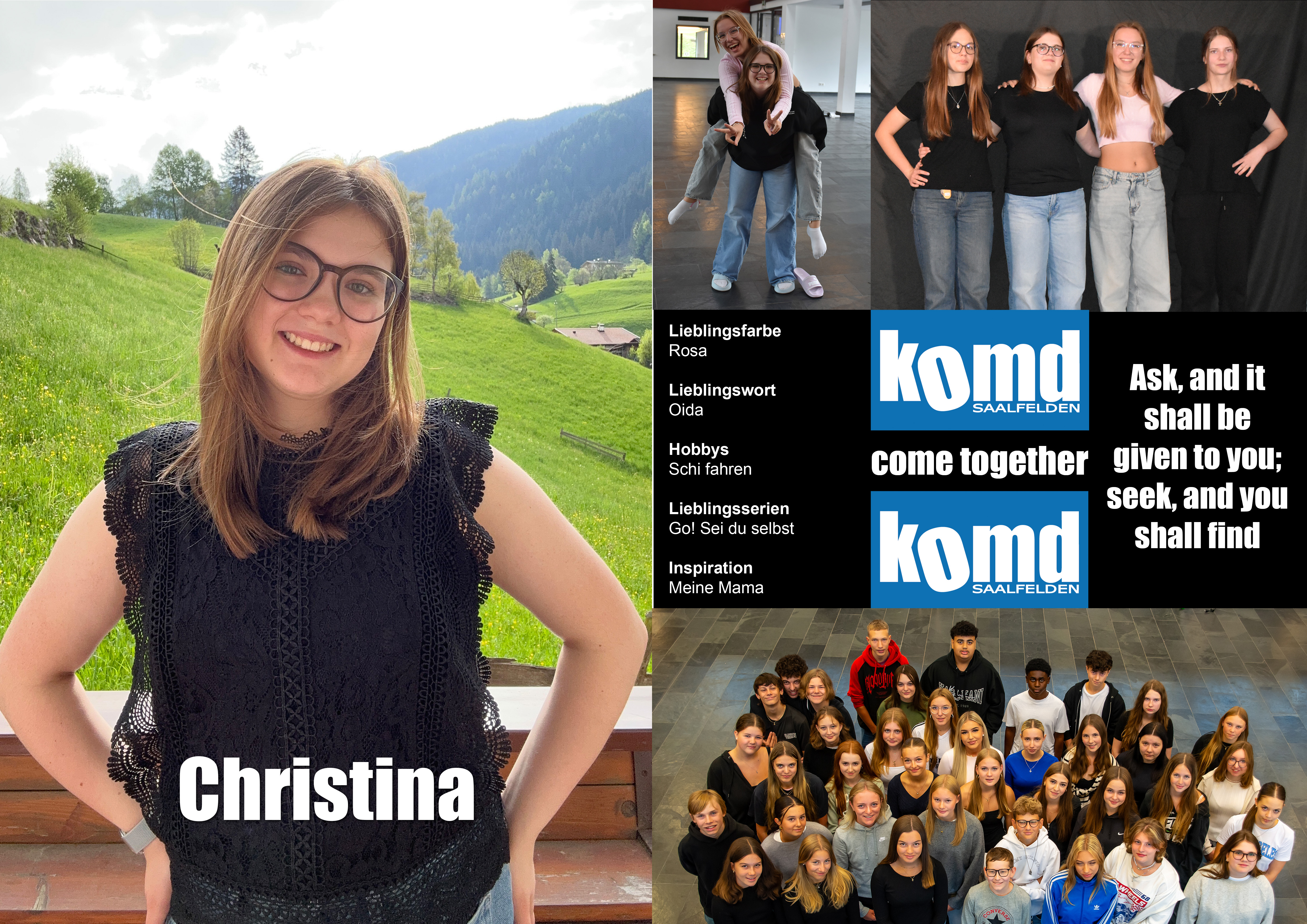 My name is Christina Lintner and I am 15 years old. I have an older brother with whom I live together with my parents in Reith bei Kitzbühel. I attended kindergarten and elementary school in Reith bei Kitzbühel, but I went to middle school in Kitzbühel. I have picked the branch KOMD, because I am really interested in stuff like Photoshop, photography and generally topics which this branch provides. The other possibility, cooking, just wasn’t an option for me. After I have graduated from school with my A levels, I want to study at a university, probably a teaching degree course or management course. But it can also be that I will do something completely different, as I’m also interested in other things.