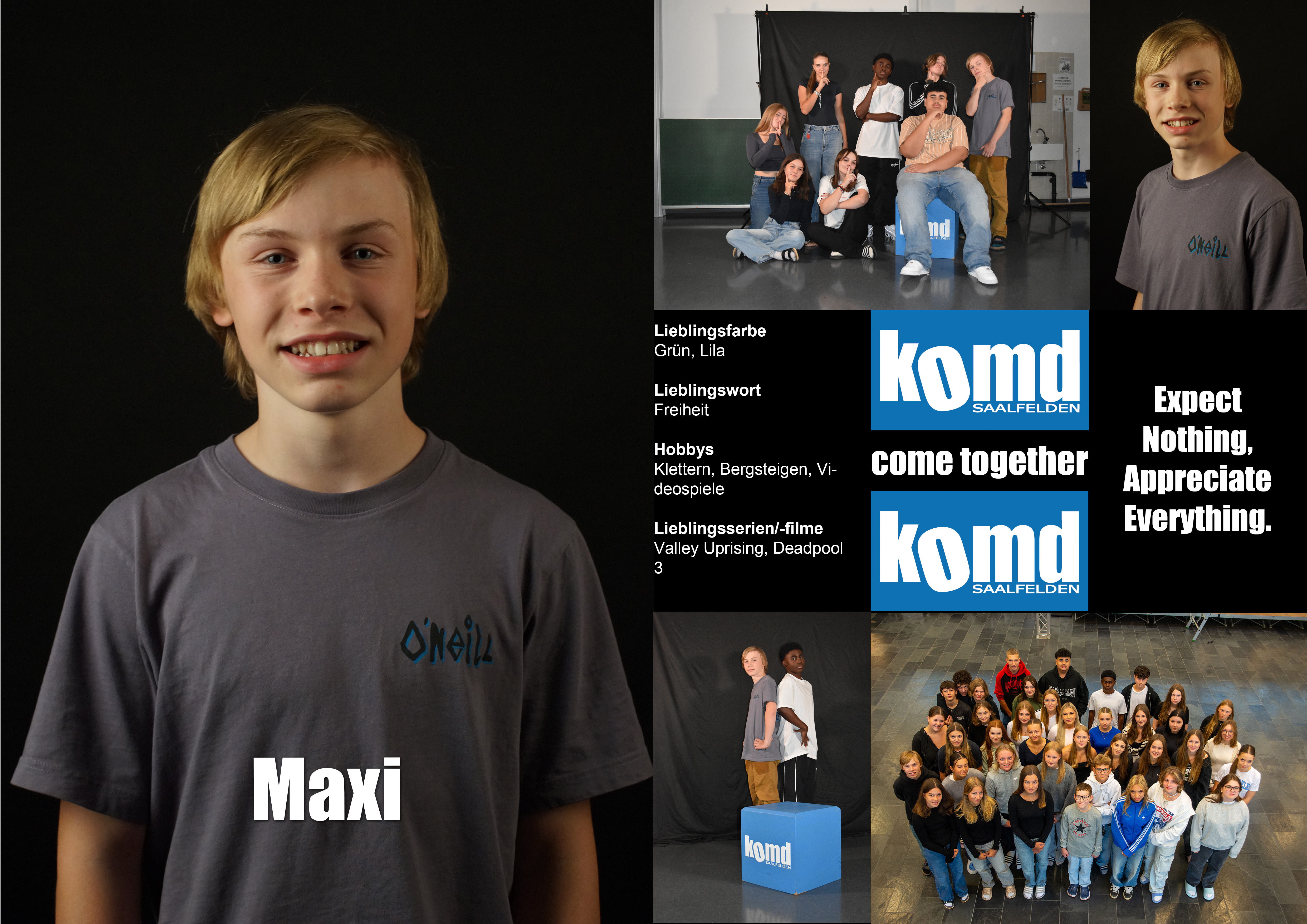 Hi, I am Maximilian Josef Jan, I am 16 years old and from Saalfelden. I have two big brothers. I went to the primary school Saalfelden Bahnhof. From 10 to 14 I went to the New Middle School Saalfelden Bahnhof. I spend my ninth year in the Polytechnische Schule Saalfelden. I am currently spending my tenth school year in HBLW Saalfelden. I chose KOMD, because I like everything about KOMD. I love to create photos, podcasts and websites and also to photograph and do creative things. My plans are open for the future, but I want to travel the world, study Philosophy and lead a good, experienced and happy life with wife, children and dog.