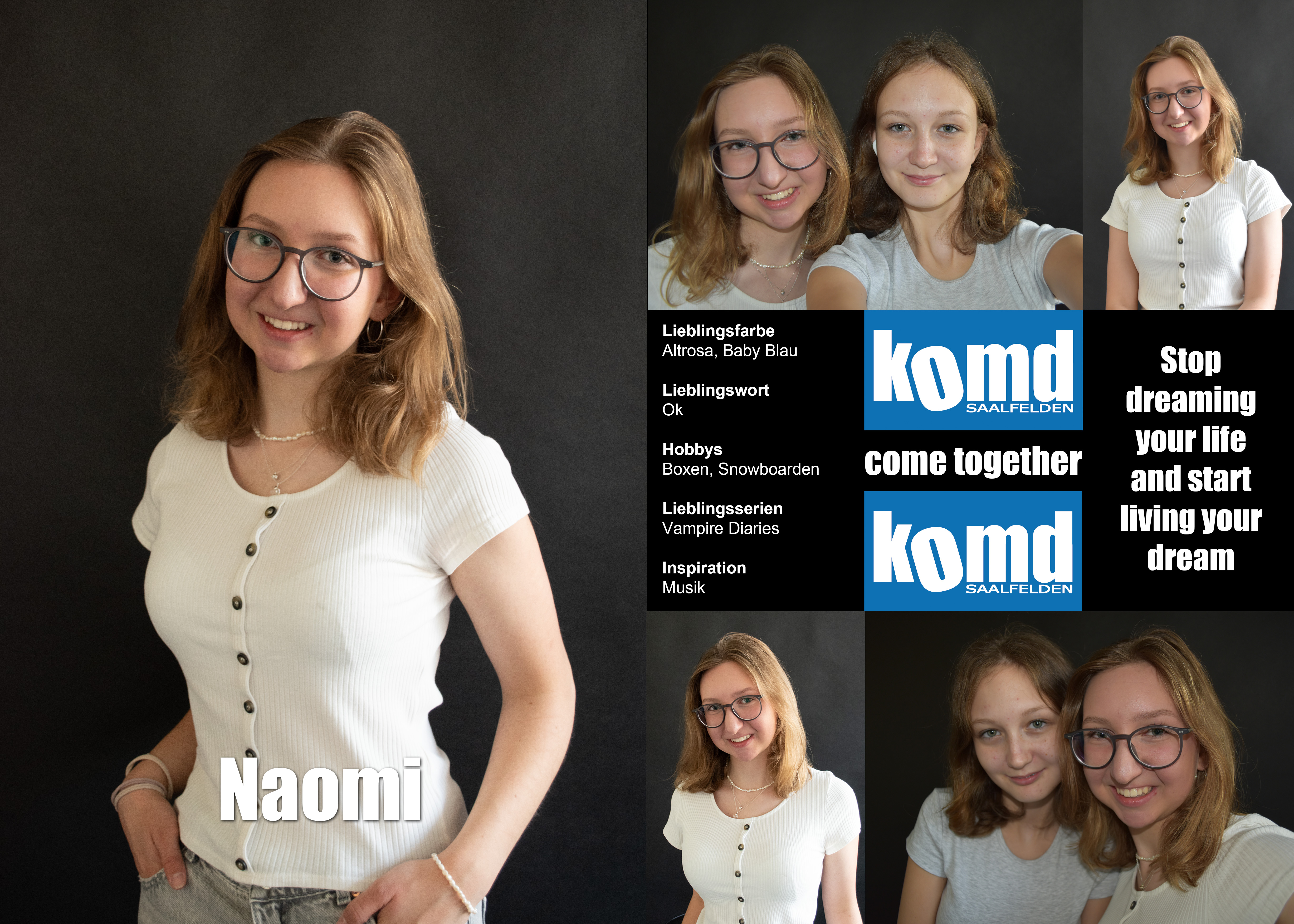 My name is Naomi Haeuslschmid. I am 15 years old and I was born on the 24th of April 2009 in Schladming. Currently I live in Ramsau am Dachstein on the weekends and in the boarding house Alm 34 in Saalfelden during the week. My hometown is so far away from the school I’m attending that I have to stay here.