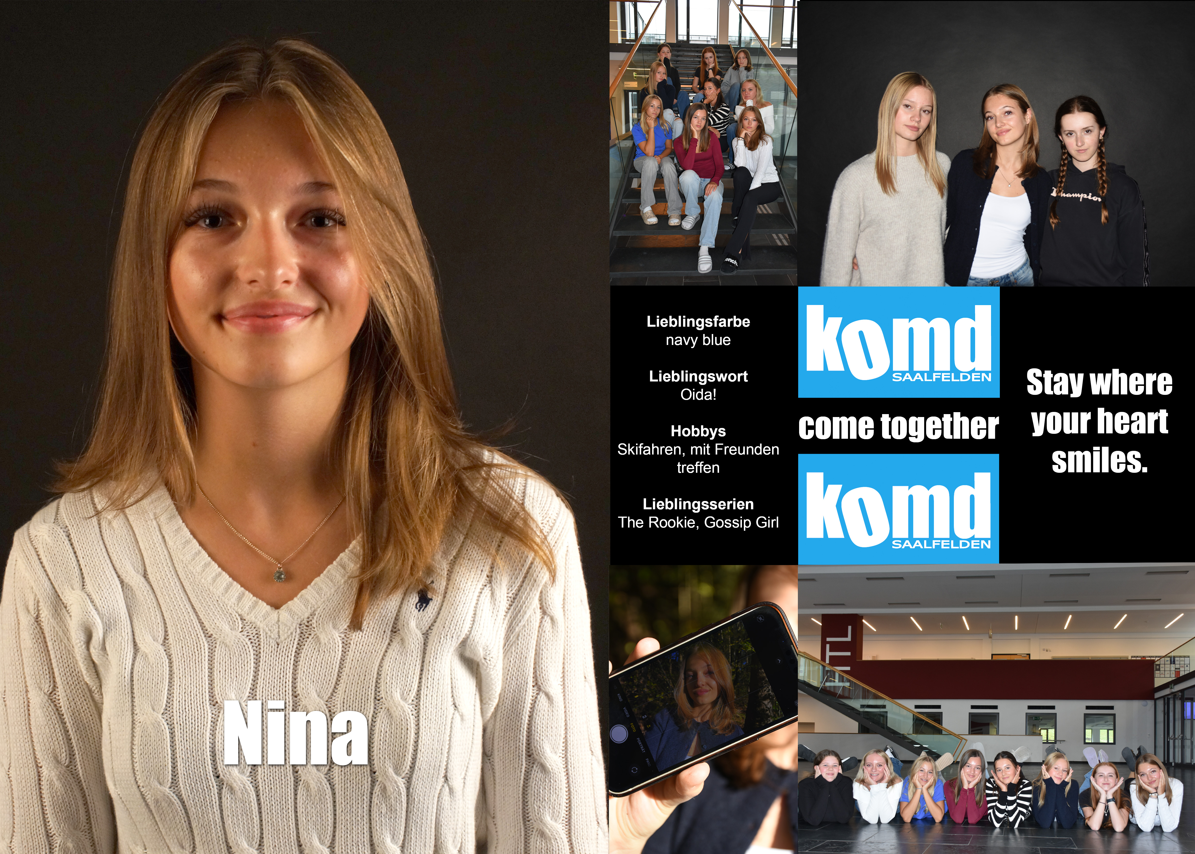 Hi, my name is Nina Oberhofer. I’m 15 years old and I come from in Kitzbühel. I attended primary and secondary school in Kitzbühel. At the moment I’m continuing my educational journey in the 9th grade at the HBLW with the specialization “KOMD”. A friend of me woke my interest for this school, so we visited an Open Day and were very inspired of it. First, I had another option and wasn’t sure which of the two schools would be better for me, but then I decided to go to the HBLW with the direction “KOMD”, because I’m very interested in creative projects. I want to graduate with the high school graduation exam as good as possible and maybe start to study at the university, in a field which suits me after my graduation.